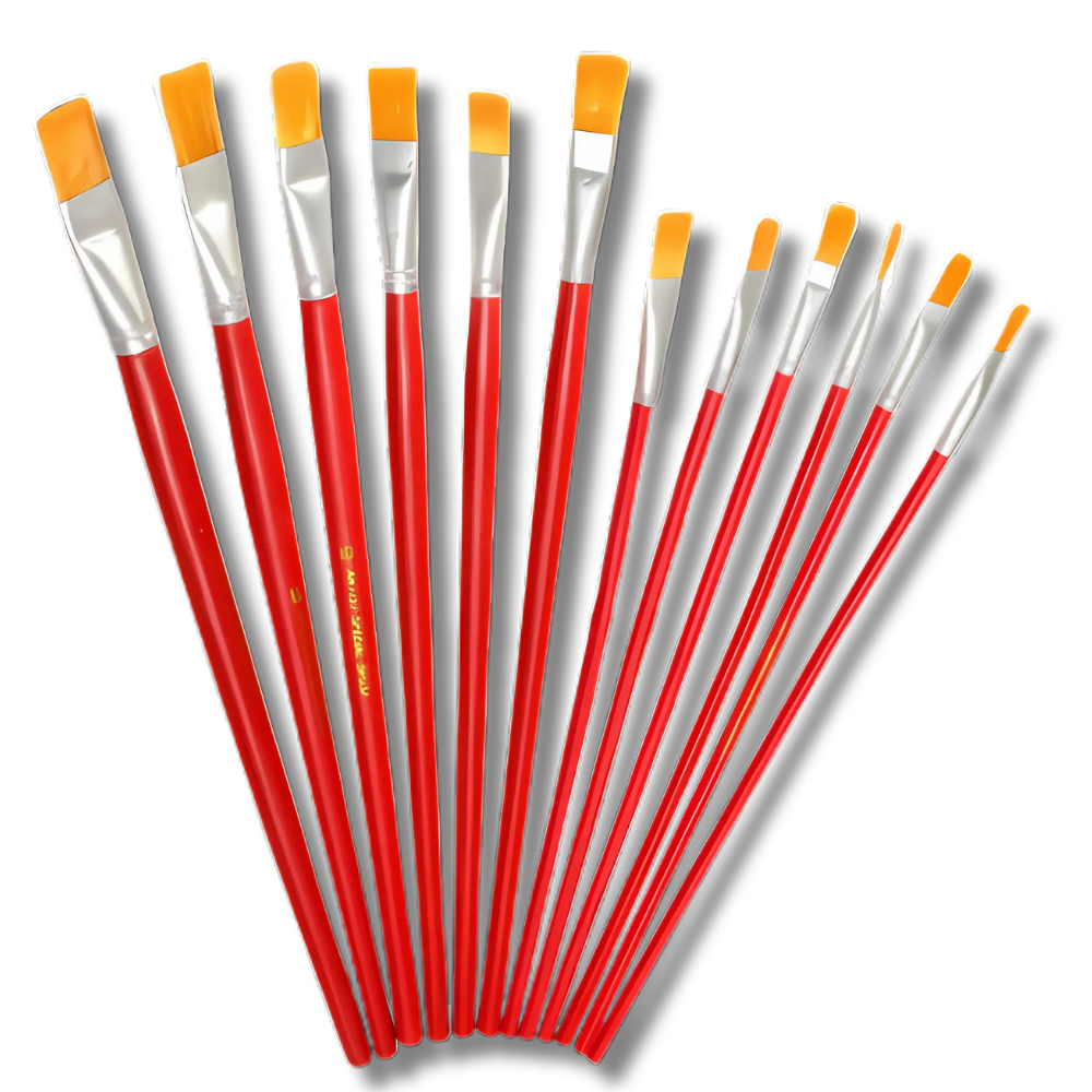 طقم فرش بأحجام مختلفة لألوان الزيت والماء | 12 قطعة | أحمر